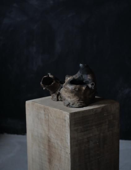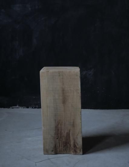 ケヤキの丸太から切り出された贅沢な展示台。