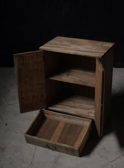 縮み杢が印象的な収納棚。